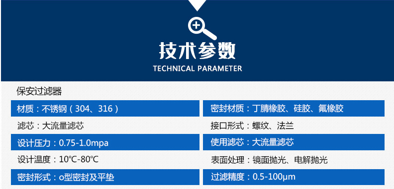 316不銹鋼精密保安過(guò)濾器相關(guān)技術(shù)參數(shù)