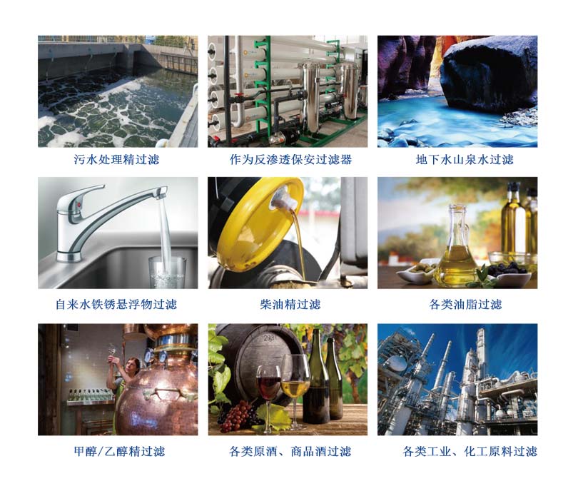 濾器等介質(zhì)過濾器的后處理環(huán)節(jié)。也可用于超濾、反滲透裝置過濾環(huán)節(jié)的前面,作用都在于防止前道工序