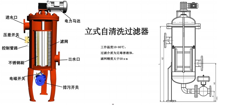 自清洗過濾器是一種利用濾網(wǎng)直接攔截液體中的雜質(zhì) ,漂浮物,顆粒物等,同時(shí)降低水的濁度,減少污垢,同時(shí)保障后面設(shè)備正常工作及使用壽命的精密設(shè)備,可有效的解決冷卻循環(huán)水系統(tǒng)中的雜志或因結(jié)垢生銹產(chǎn)生固體懸浮物,自清洗過濾器,運(yùn)行及控制不需外接任何能源就可以自動(dòng)清洗過濾,自動(dòng)排污。反沖洗期間不斷流,清洗過濾可以調(diào)節(jié),自清洗過濾時(shí)間默認(rèn)為10-60/s ,清洗過濾損失水量只占過濾水量的0.08 - 0.6% ;過濾精度可達(dá)10-3000微米;工作壓力可達(dá)1.0-1.6Mpa ;單臺(tái)流星: 4-4160m3/h??闪⑹健⑴P式、倒置任意方向任意位置安裝。