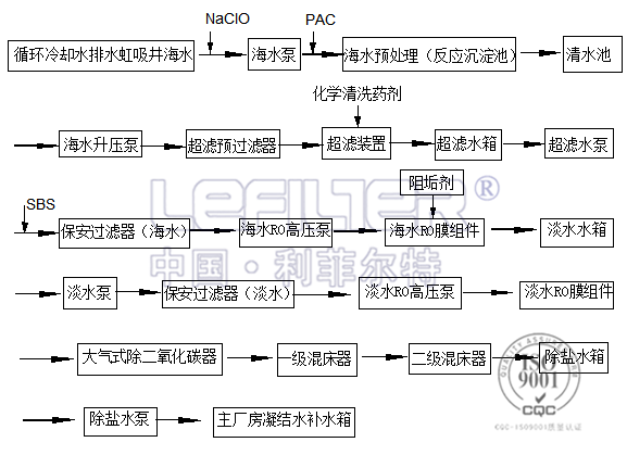 本工藝方案是根據(jù)用戶要求,以系統(tǒng)運行可靠、經(jīng)濟合理為原則,采用相關(guān)設(shè)計標(biāo)準(zhǔn)和規(guī)范,結(jié)合我公司多年工程經(jīng)驗,以海水做為原水水源而編制的。
