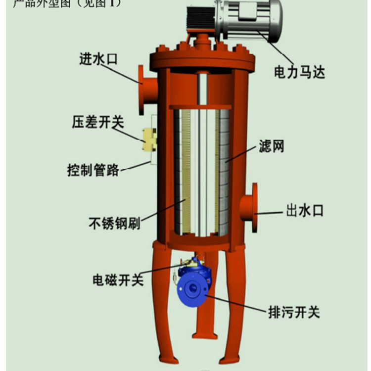 自清洗過濾器:在壓差或者設(shè)定的時間達到后,電機啟動通過傳動軸帶動內(nèi)部鋼刷轉(zhuǎn)動進行清洗,清洗后的水從排污口排出,且清洗不斷流,系統(tǒng)不間斷供水。