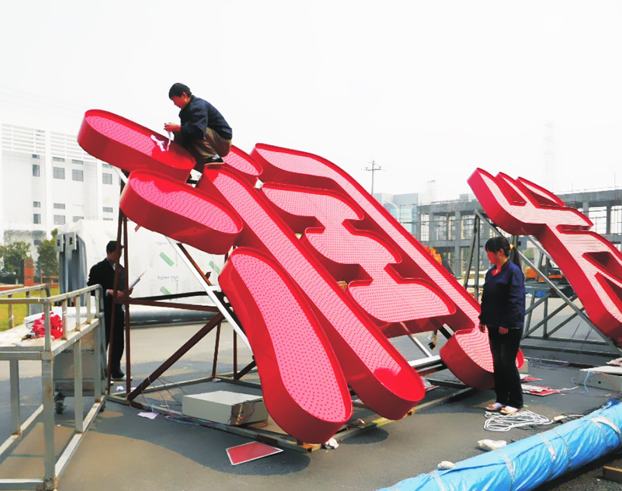 • 2不受大小限制:外露發(fā)光字通過(guò)激光切割焊接而成,所以不受機(jī)器限制大小,不拼接,更美觀。