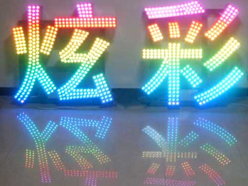 外露發(fā)光字,又稱(chēng)沖孔發(fā)光字、穿孔發(fā)光字、燈珠字、外露led發(fā)光字、全彩led發(fā)光字等。是指在不銹鋼字、鋁字、鐵皮字等表面上沖孔裝上LED防水燈串。燈串顏色分為單色燈、七彩燈和全彩燈。常用于樓頂大字、門(mén)頭招牌。