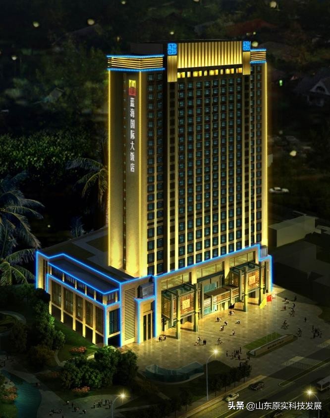 泰安藍(lán)海國際大飯店樓體鋁板沖孔燈亮化工程