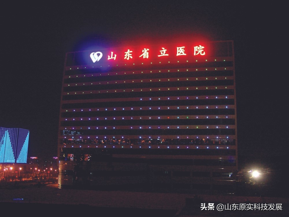 山東省立醫(yī)院樓頂沖孔發(fā)光大字效果