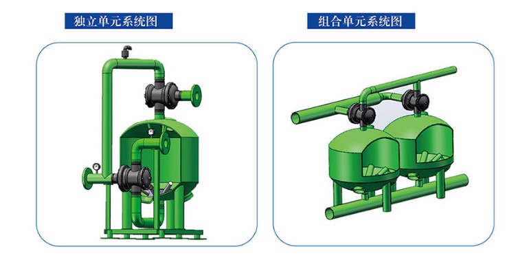 隨著雜質(zhì)在填料層中不斷聚積 , 內(nèi)部壓頭損失將不斷增大。當(dāng)進(jìn)、出水壓頭損失達(dá)到設(shè)定值或達(dá)到設(shè)定時(shí)間時(shí) , 系統(tǒng)將自動(dòng)激活定壓差裝置使其轉(zhuǎn)換至反洗狀態(tài) , 當(dāng)此臺反洗結(jié)束,水力閥改變給水方向從而實(shí)現(xiàn)逐臺反洗 , 更便于清洗聚積起來的雜質(zhì)。
